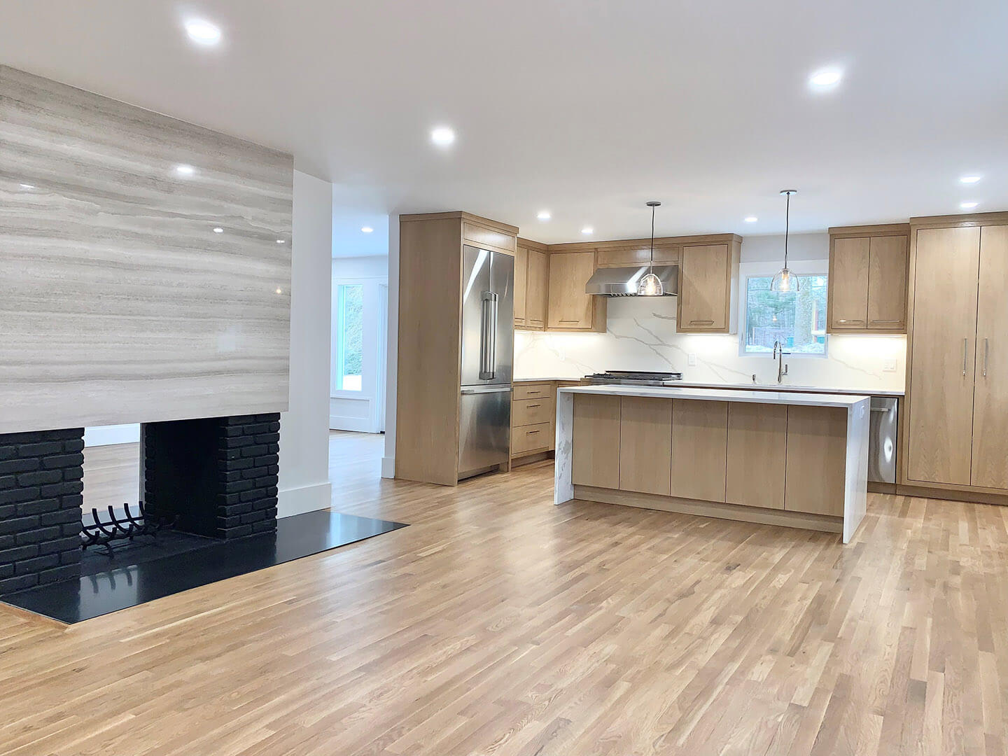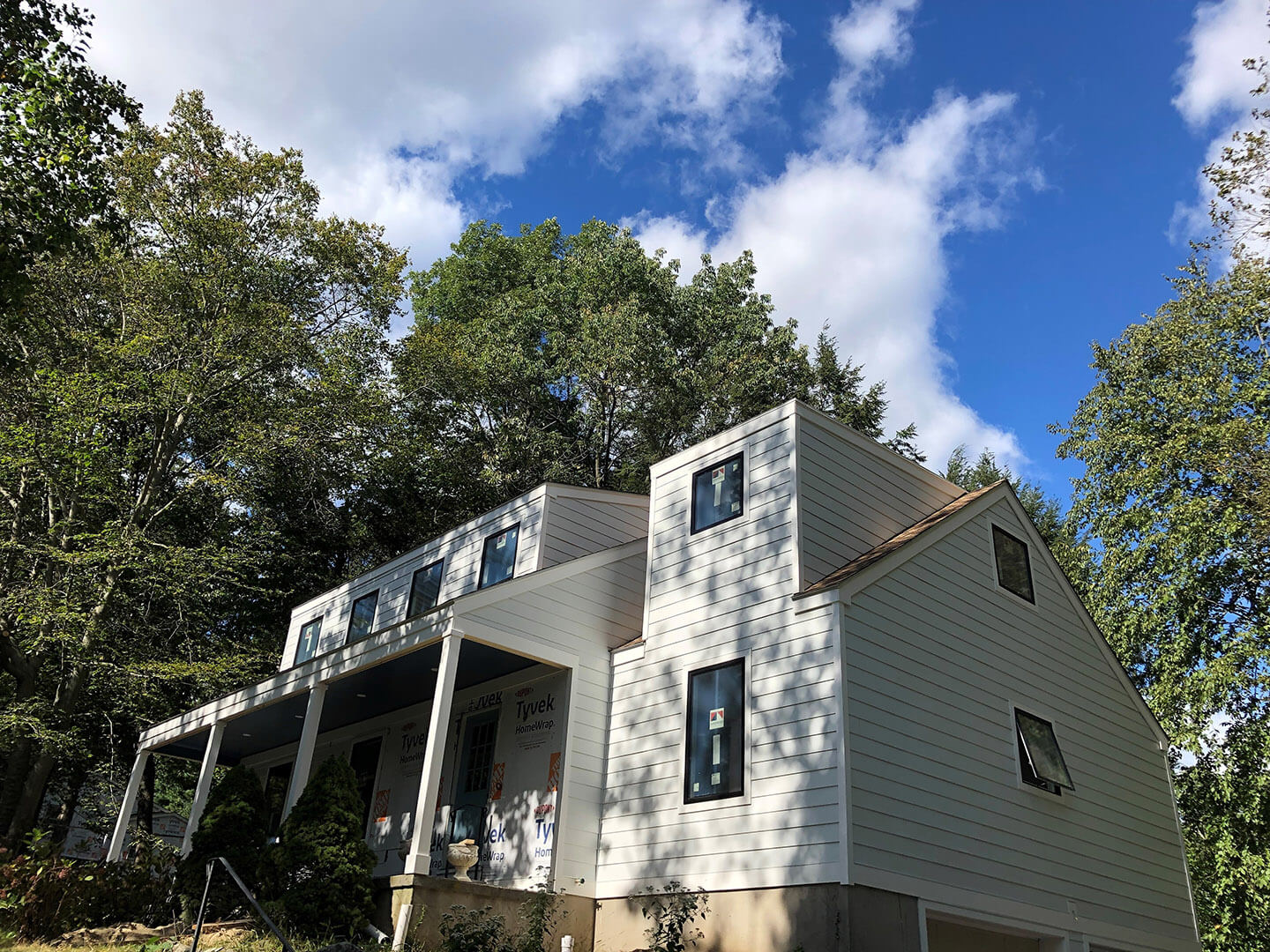 This Cape Cod-style house in Greenwich, Connecticut was strategically modified to open up the interior of the first floor living space and expand the upstairs bedroom space via new dormers designed to work with the existing language of the house. A generous Primary Bedroom Suite was provided on the 2nd floor with a new Den/Guest Room created on the first floor.
